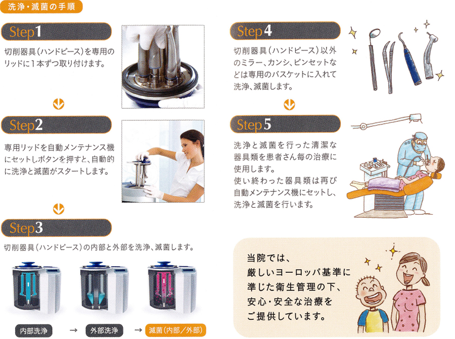 内部と外部を「洗浄・滅菌」した切削器具を患者さん毎に使用しています。